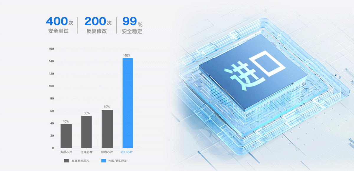 H607采用國外進口高速芯片,測量準確且持續穩定,高達0.1微米分辨率和0.3秒的測量速度,使得每·臺出廠儀器都測量精準。對比業界其他芯片,H607不僅擁有性能強大的進口高速芯片,還兼顧優秀的品控,每臺儀器在出廠前經過400多次安全測試,200次反復修改,安全穩定系數達到99%。
