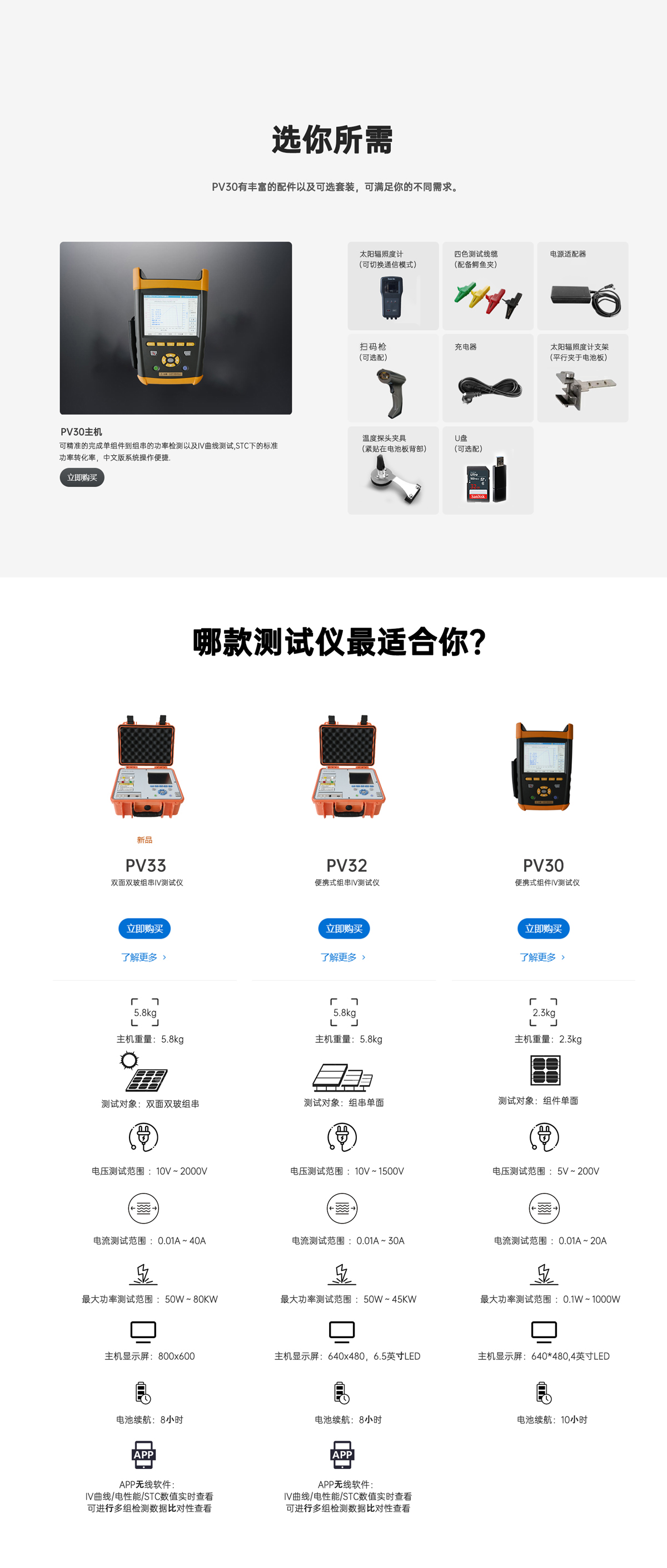 注*:輻照度測試準確度會因為大氣條件不同以及周圍環(huán)境的影響而產(chǎn)生改變,準確度指標是在滿足 AM1.5光譜分布、輻照度≥700W/m2的AAA級太陽模擬器輻照下測得。
